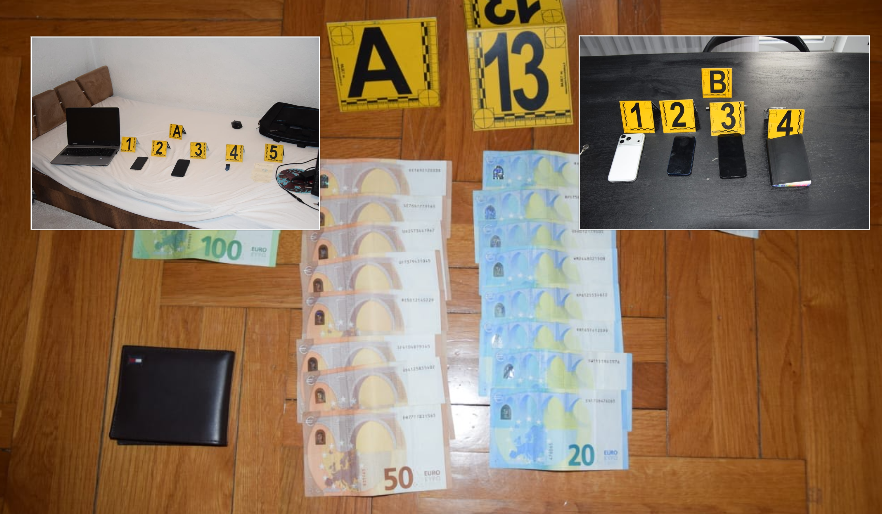 Gjatë zbatimit të urdhër kontrollit janë gjetur dhe sekuestruar prova materiale, përfshirë telefona, laptopë dhe para të gatshme në vlerë prej 11.756 euro.