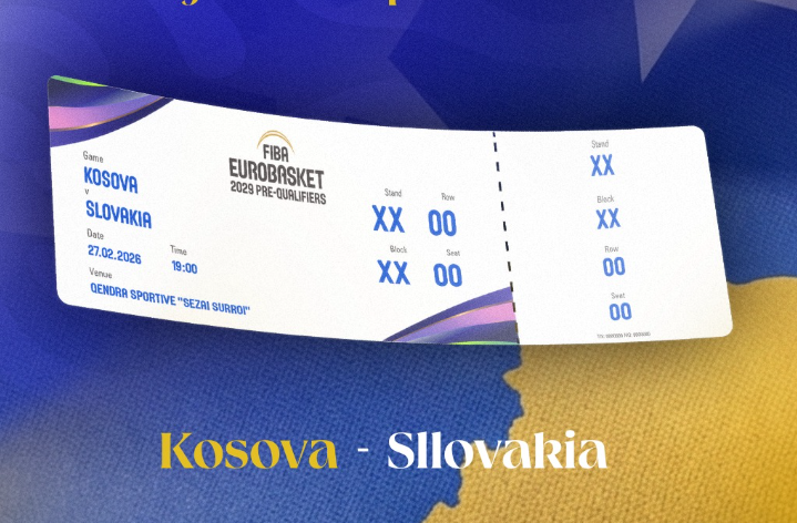 “Nga sot deri më 27 shkurt 2026, biletat për ndeshjen e dytë parakualifikuese të Kosovës për FIBA EuroBasket 2029, Kosova vs Sllovakia janë në shitje në fanshopin e KB Bashkimit në Prizren, përballë palestrës sportive “Sezai Surroi””, thuhet në njoftim.